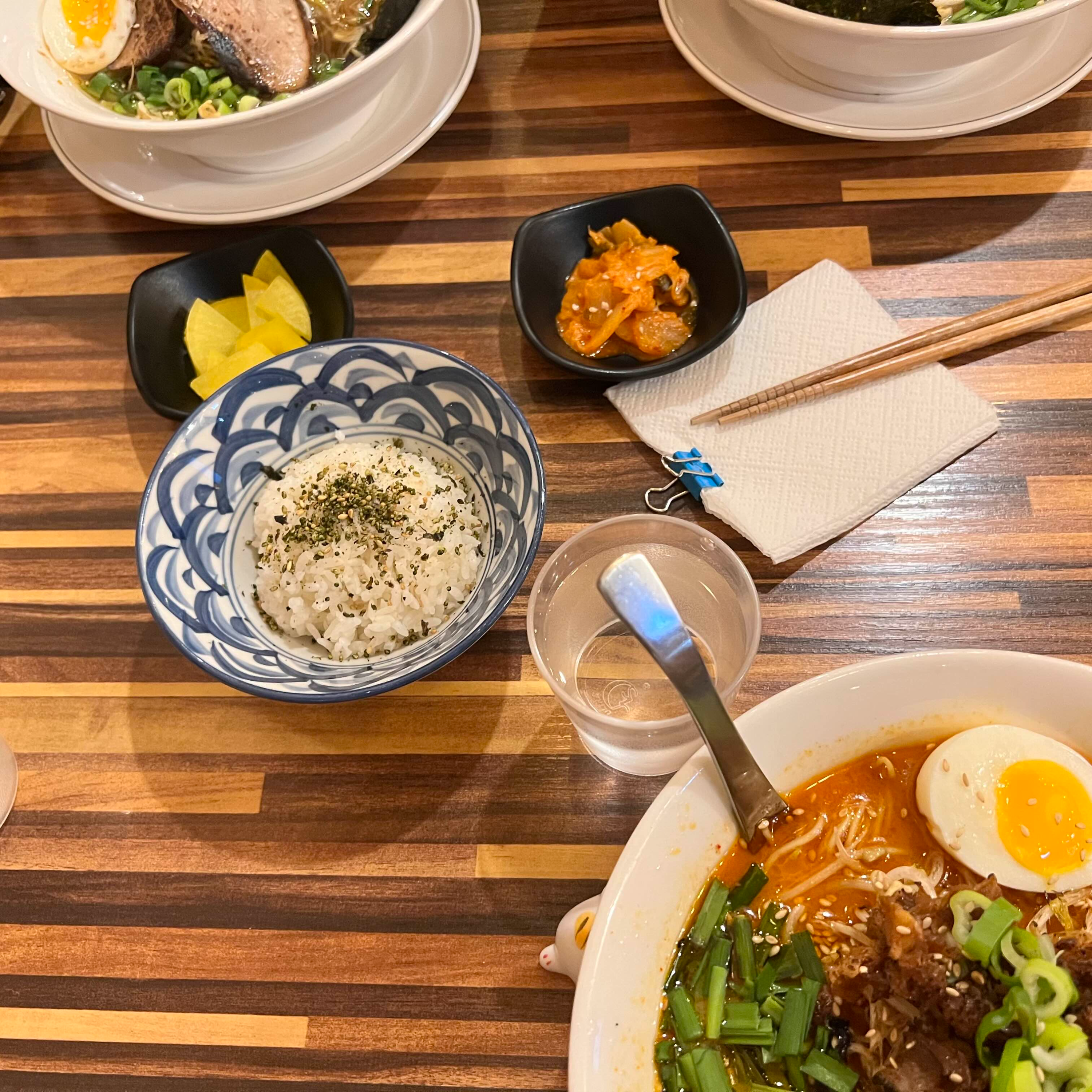 이건 마지막으로 우마이멘 라면입니다. 숯불향이 배어있는 고기 토핑, 밥과 얼큰한 국물의 궁합이 좋은 든든한 라멘이에요.
