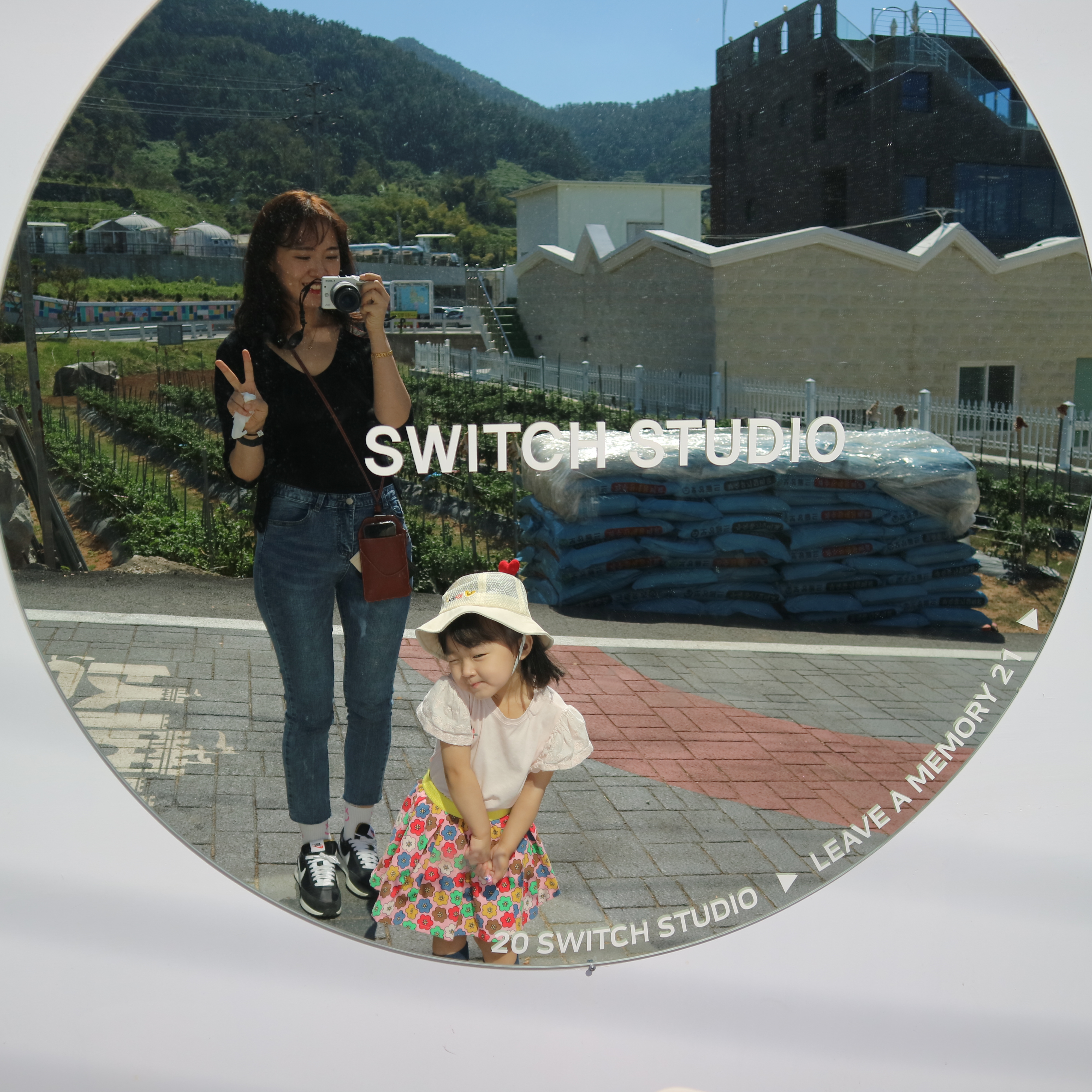 주차장에 주차를 하고 매미성 가는 길목으로 들어서면 여러 상점들을 볼 수 있습니다. 아무래도 마을주민분들이 판매도 하는 것 같지만 아이스크림, 카페, 빵, 악세사리 등 다양한 볼거리 판매거리를 볼 수 있었습니다. 위 사진과 같이 거울도 있어서 쓰윽- 지나갈 수 있지만 사진한번 찍고 가셔도 좋을 것 같네요. 어떻게 찍어도 이쁘게 잘 나오는 공간같습니다.