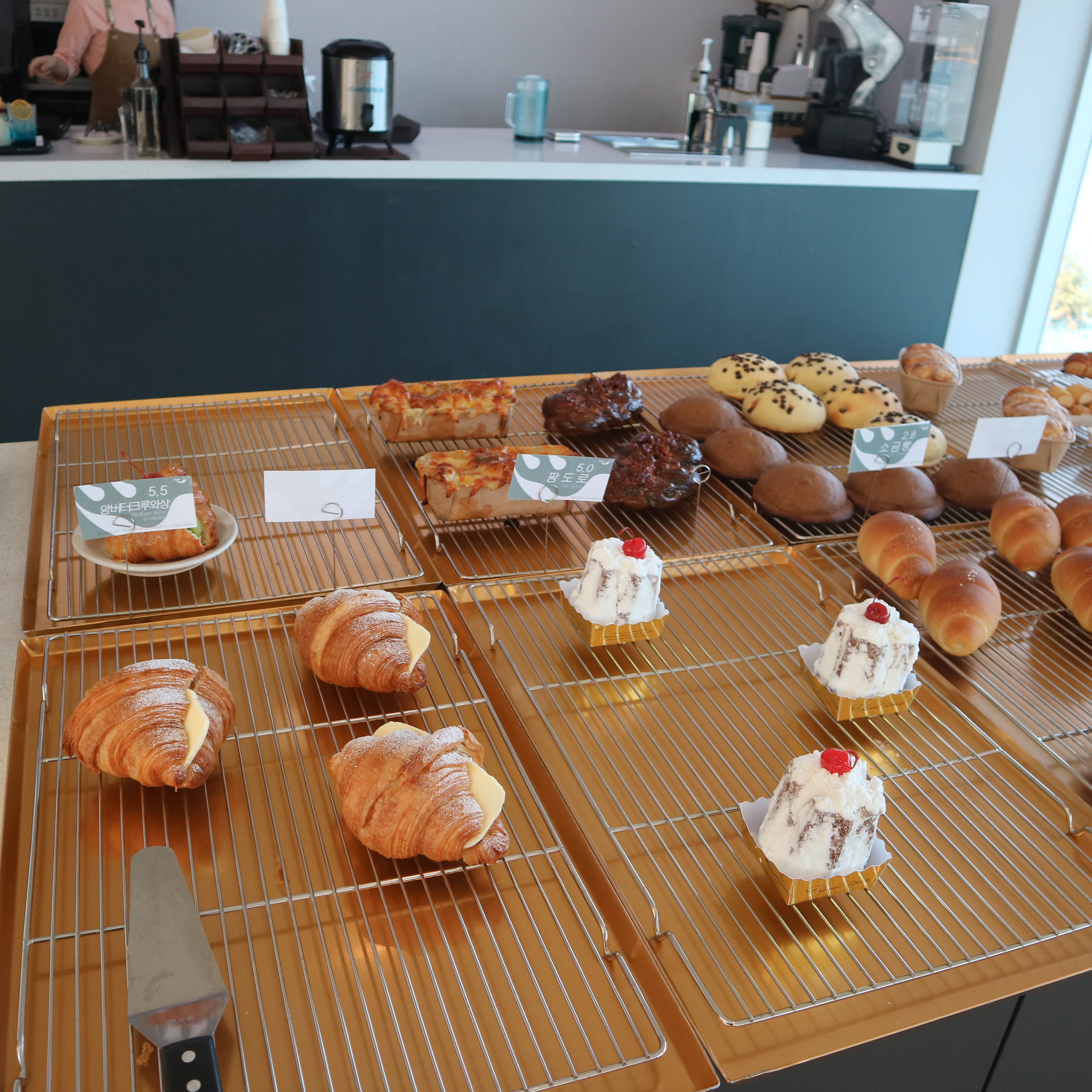 심해 카페 안으로 들어가보니, 다양한 베이커리도 판매하고 있었습니다. 여러가지 맛있어보이는 빵들이 있어서 먹고싶긴 했지만, 밥을 먹어야하기에 아이들이 먹을 소금빵 두개와 에이드 두잔, 아메리카노를 시켰고 주변을 둘러보기 시작했습니다.